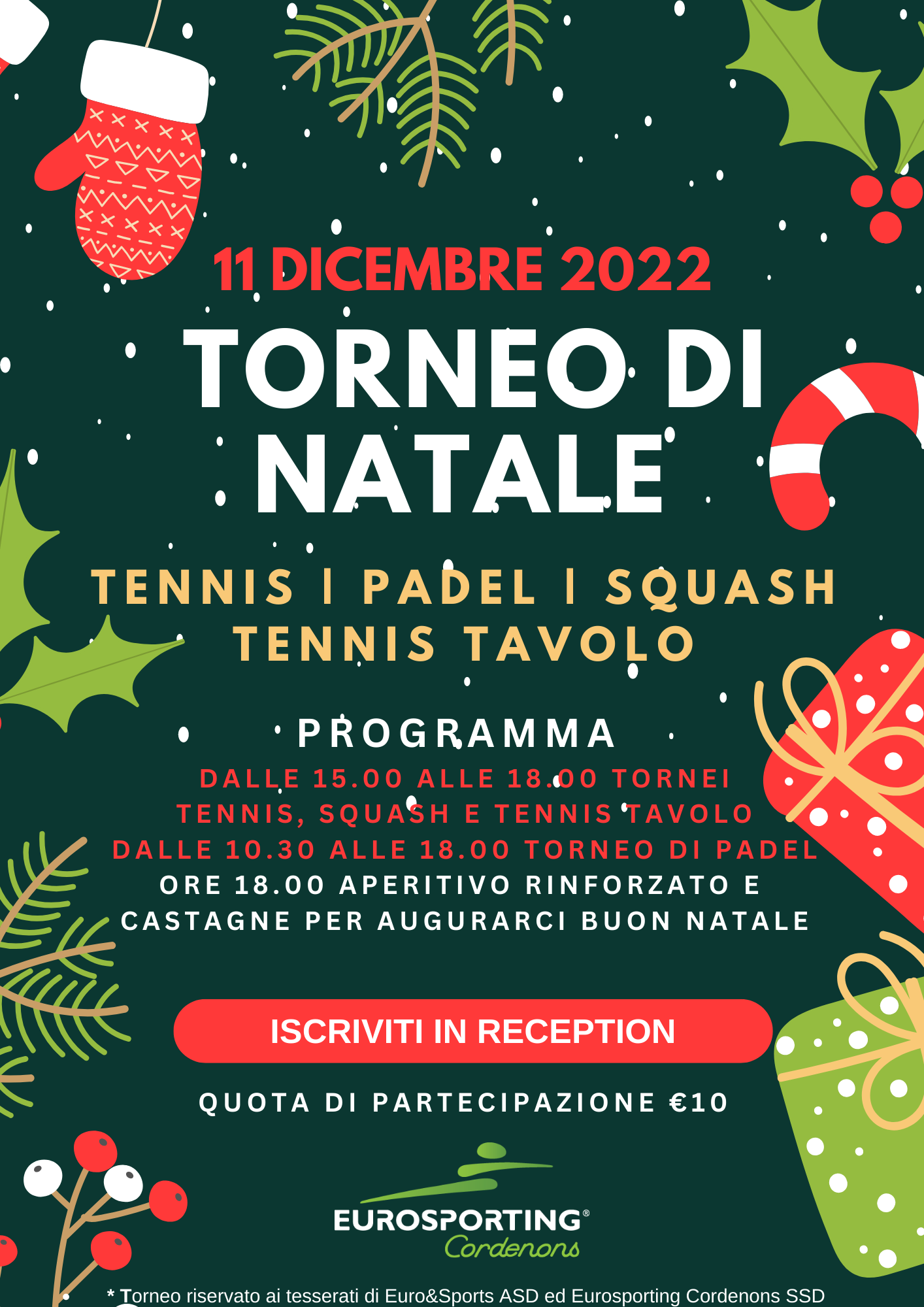 TORNEO DI NATALE TENNIS * PADEL * TENNIS TAVOLO * SQUASH DOMENICA 11 DICEMBRE
