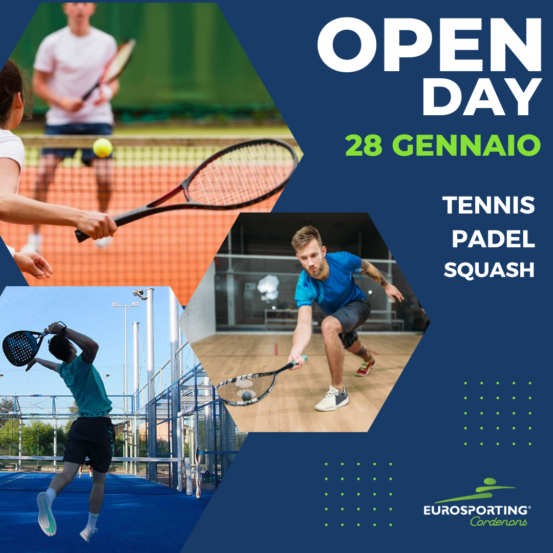 OPEN DAY DI TENNIS * SQUASH * PADEL sabato 28 gennaio dalle 14.30 alle 18.00.